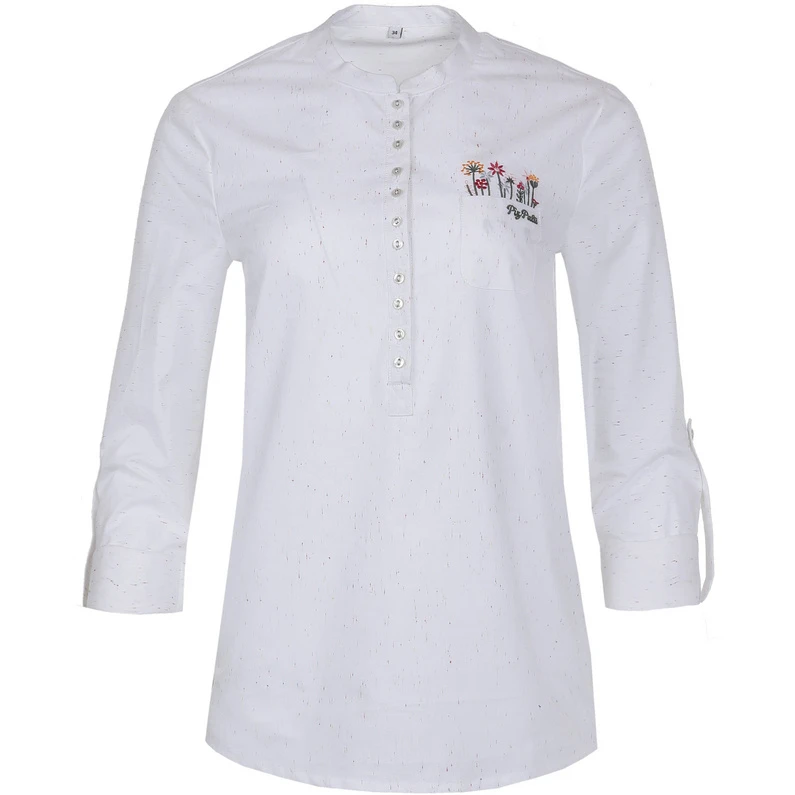 Chique en toch sportieve linnen blouse met subtiel bloemenborduursel