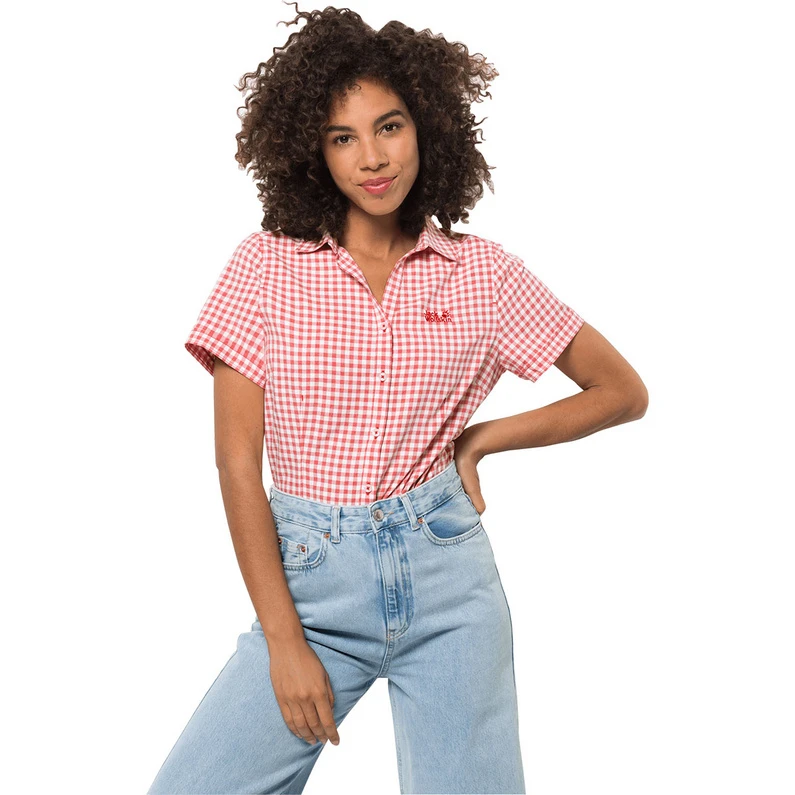 Ruitjeshemd met korte mouwen in gerecycleed polyester